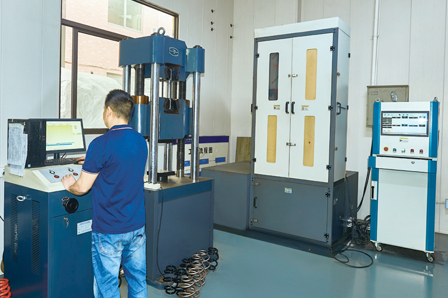 Selskapet har etablert et uavhengig testsenter og har testinstrumenter og utstyr i Kina. Den har testmuligheter innen metallmekaniske egenskaper, metallprosessytelse, varmebehandling metallografisk inspeksjon, metallkjemisk analyse, metallkorrosjon og beskyttelse, sylindriske spiralfjærer, etc. Den har evnen til å utføre full-ytelsestesting på forskjellige materialer og fjærer, inkludert alternerende tester på belegg og andre overflatebehandlinger, saltfjærfettspraytester og $fjærfettspray-tester, .